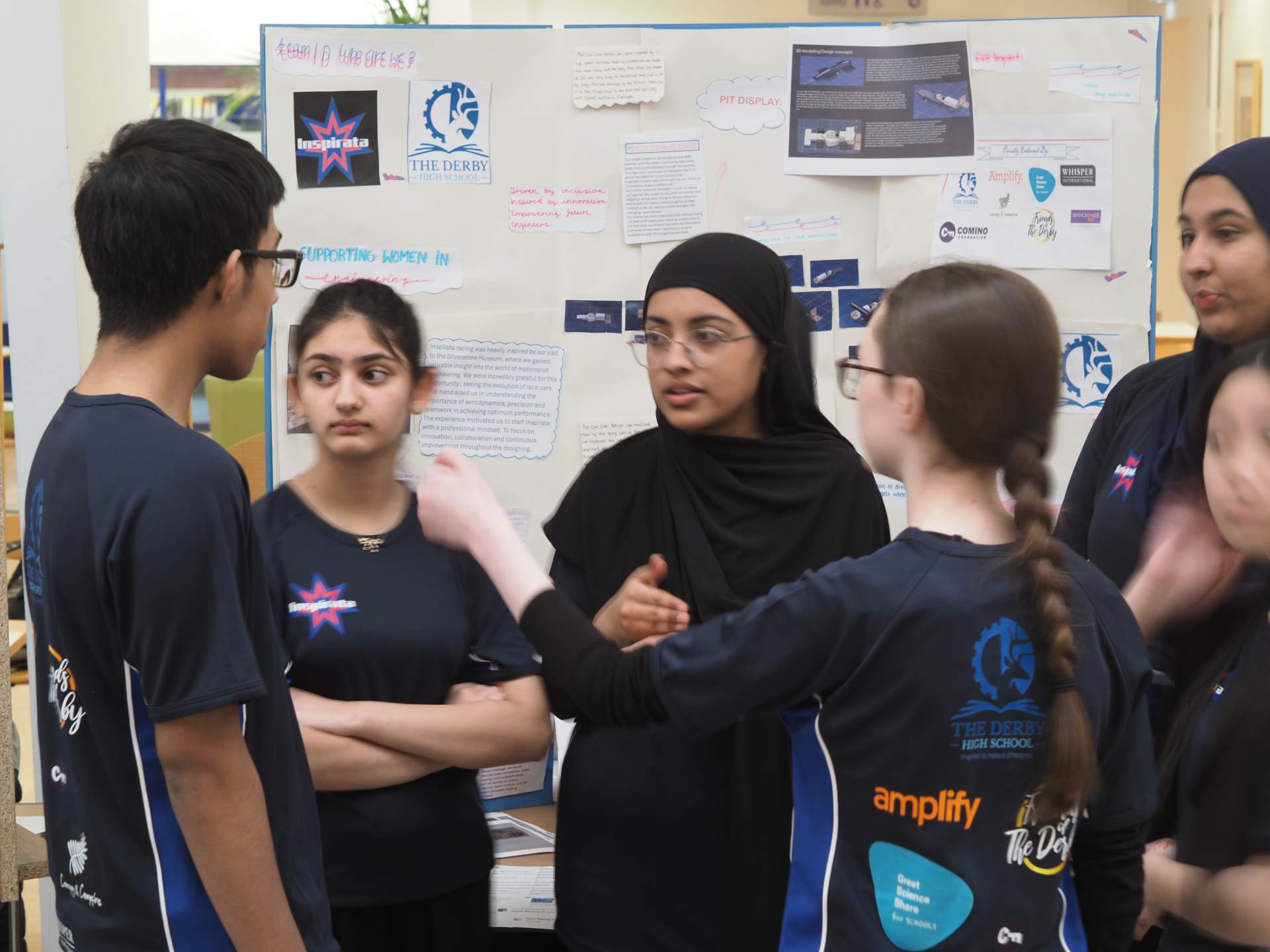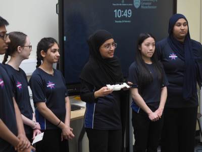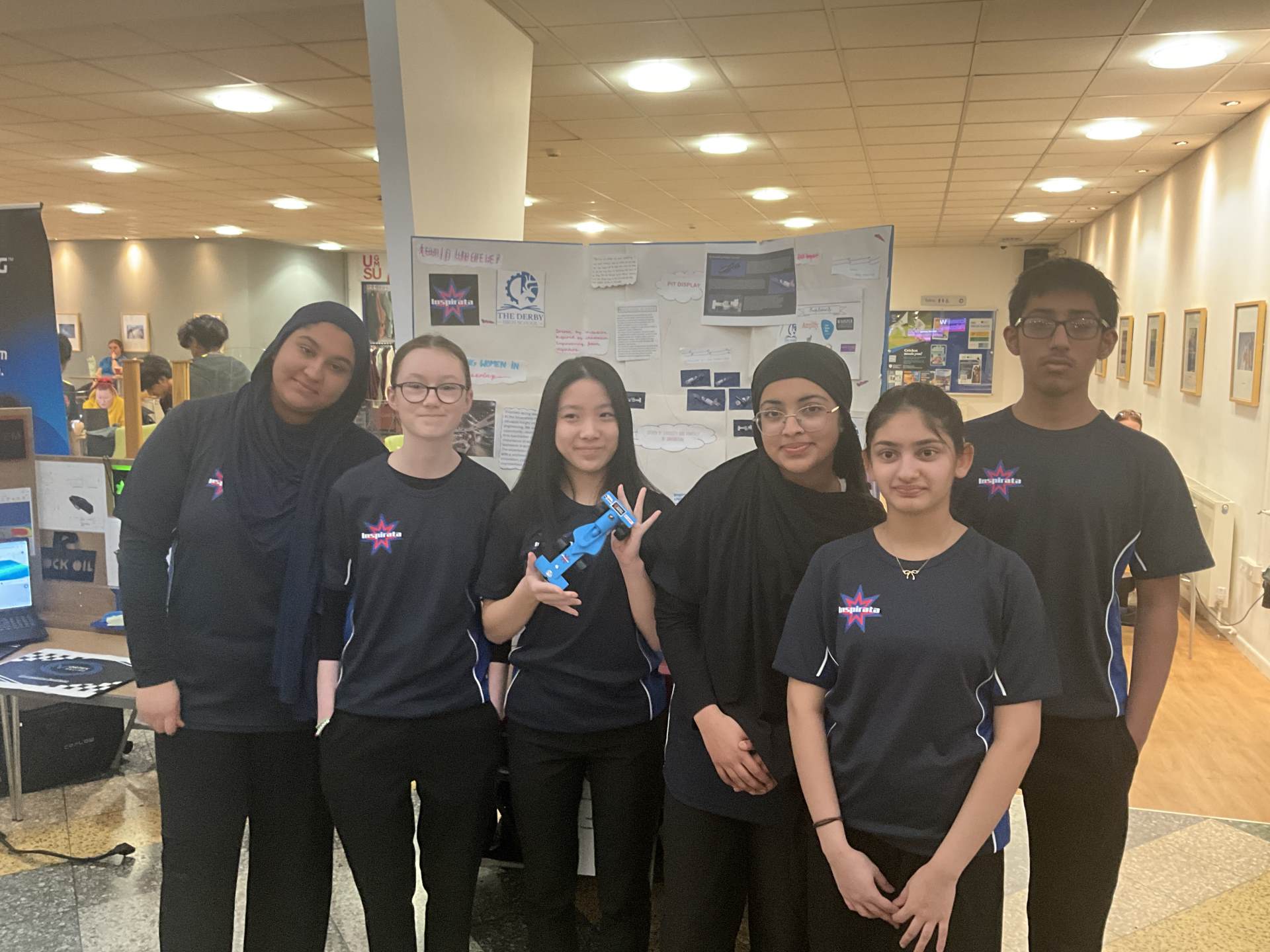 Mandy, Emaan, Alina, Millie, Laraib and Ahmad recently competed in the Greater Manchester STEM Racing Regional Finals at the University of Greater Manchester. Despite only being able to put the wheels on their car on the morning of the race due to 3D printer issues, the team performed brilliantly.